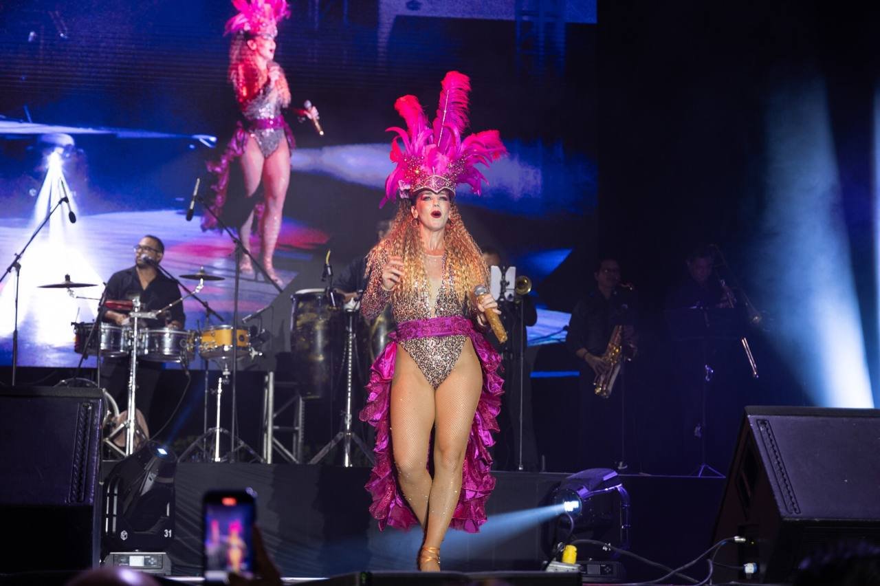 Esta noche, la presentación estelar estuvo a cargo de la artista cubana nacionalizada “Karenka y su Cuban Show”, interpretando su música pegajosa, salsa, cumbia, de Cuba para México y Playa del Carmen, quien puso al público asistente a corear y bailar sus canciones.