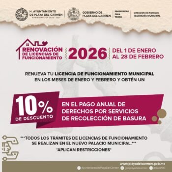 Durante el mes de diciembre de 2025, el municipio de Playa del Carmen, encabezado por la presidenta municipal Estefanía Mercado, reforzó de manera significativa las labores de limpieza urbana, logrando la recolección de 26,177.30 toneladas de Residuos Sólidos Urbanos (RSU), cifra registrada en una de las temporadas de mayor generación de desechos del año.
