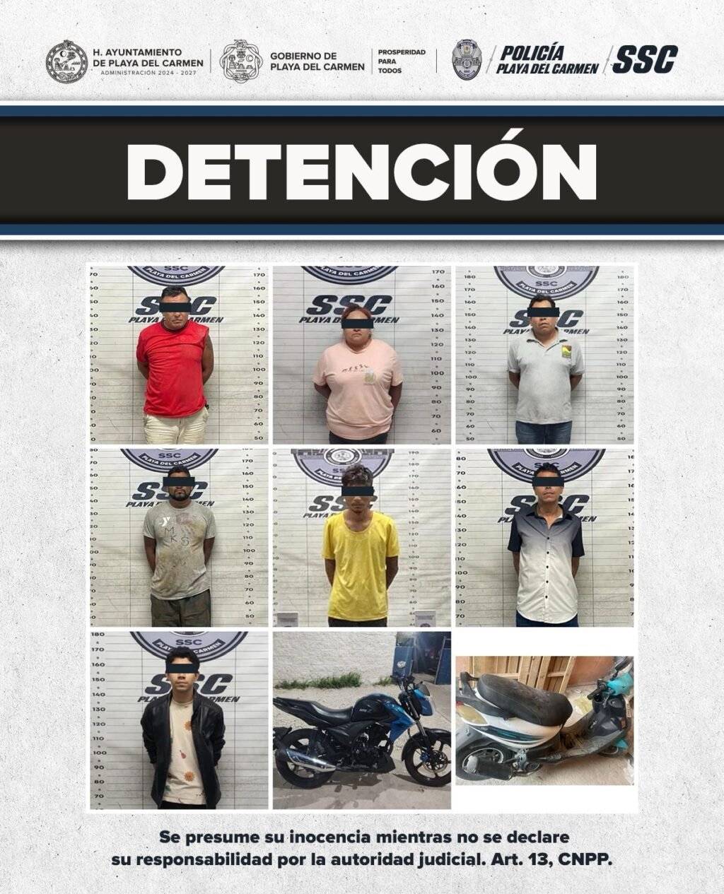 Como parte del reforzamiento de seguridad durante el Operativo de Semana Santa 2026, la Secretaría de Seguridad Ciudadana de Playa del Carmen reportó la detención de siete personas, la recuperación de dos motocicletas con reporte de robo y el inicio de investigaciones por una posible red de documentos falsos que operaría a través de redes sociales.